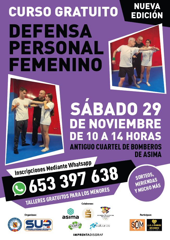 Guardias Civiles (AUGC) y Policías Nacionales (SUP) se unen, de la mano de *Primo* y la *Federación Balear de Lucha*, para organizar nuevamente el *curso gratuito de defensa personal femenina*.