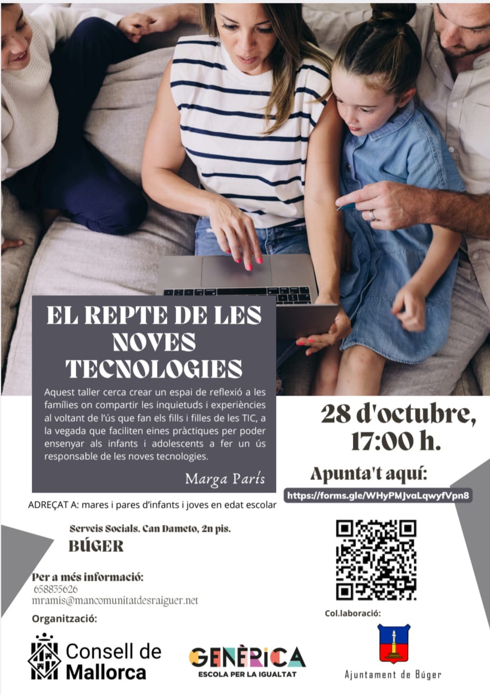 Organitza: Consell de Mallorca i GENÈRICA - Escola per la Igualtat amb la col·laboració de l’Ajuntament de Búger.