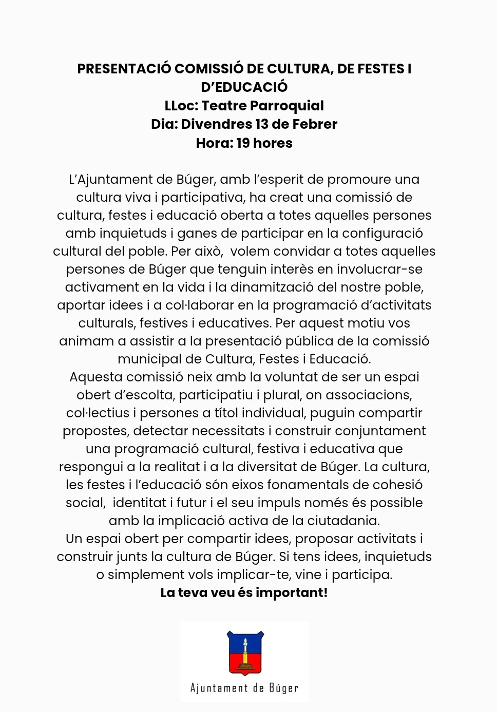 Presentació comissió de cultura, festes i educació