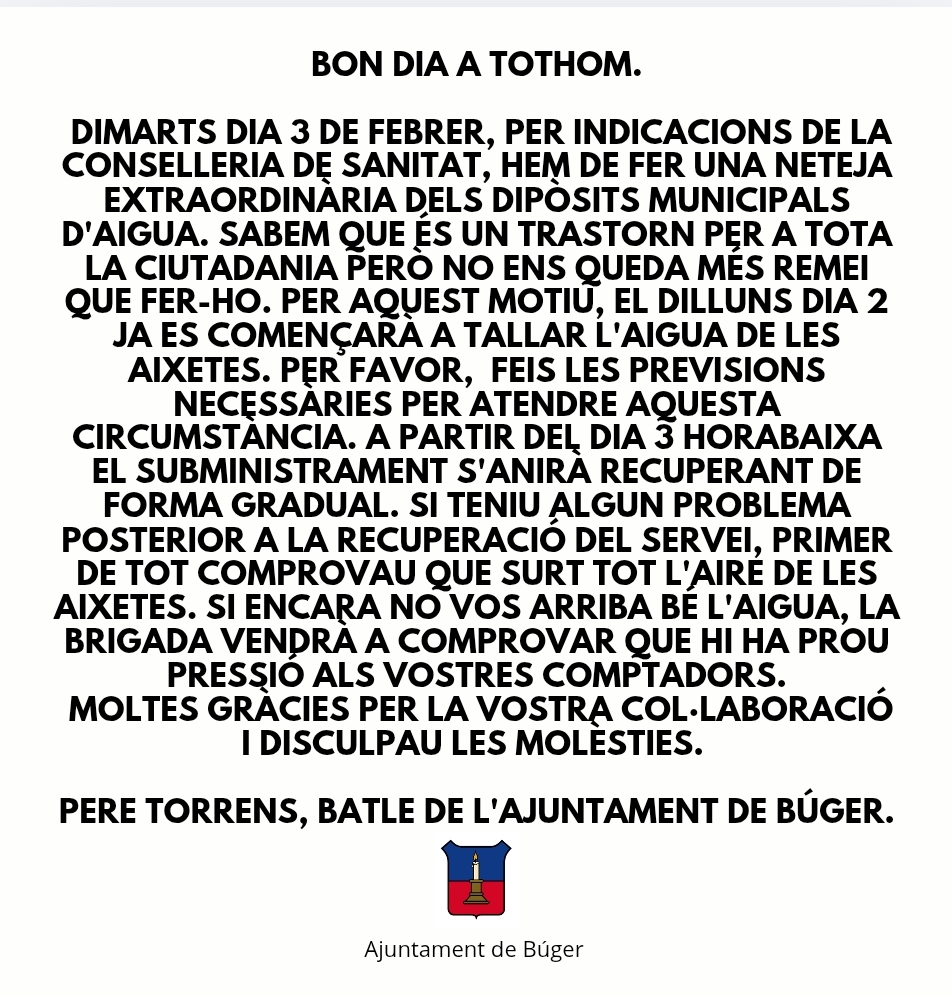 Neteja extraordinària dels dipòsits municipals d'aigua