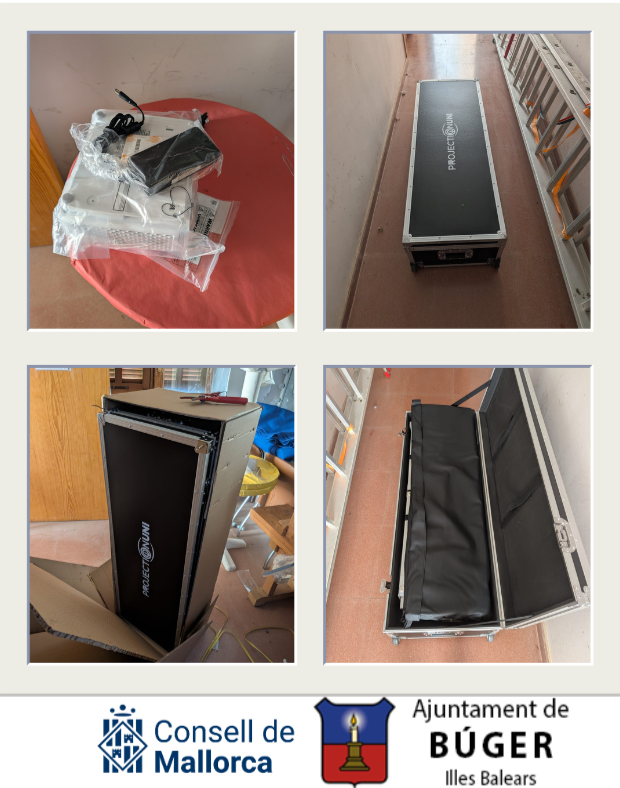 L’Ajuntament de Búger ha completat el projecte d’equipament audiovisual per al Teatre Parroquial, amb la instal·lació d’un projector làser d’alta resolució i una pantalla de projecció plegable amb caixa de protecció i transport.